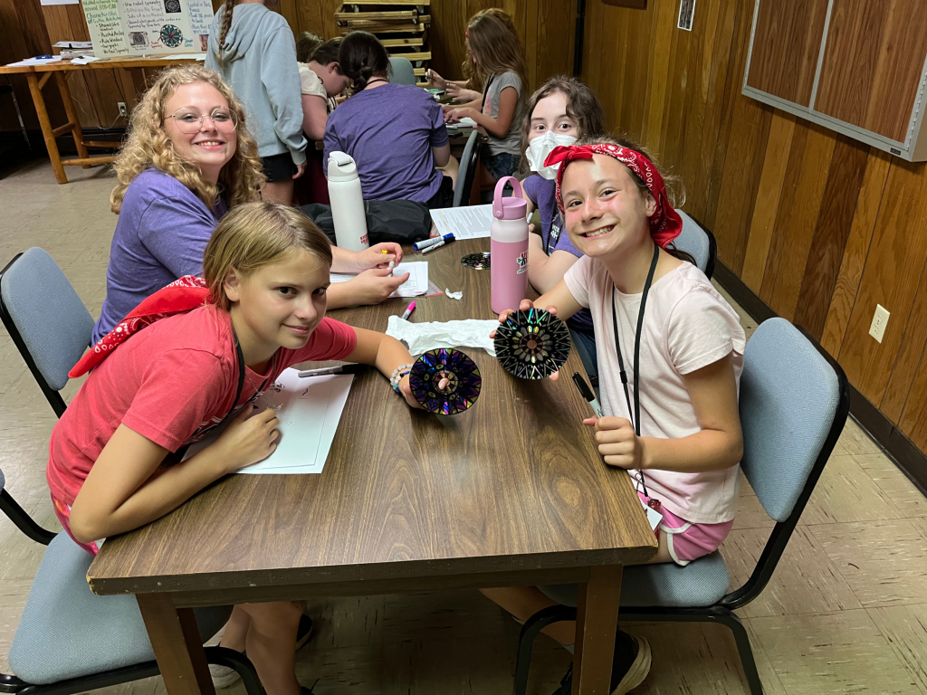 Campers studied historical cathedrals and designed their own cathedral windows on ancient compact discs. Others told stories of their family lineages by creating collages and crests. Some campers penned and performed original plays filled with mirth, merriment, and the occasional tragedy.