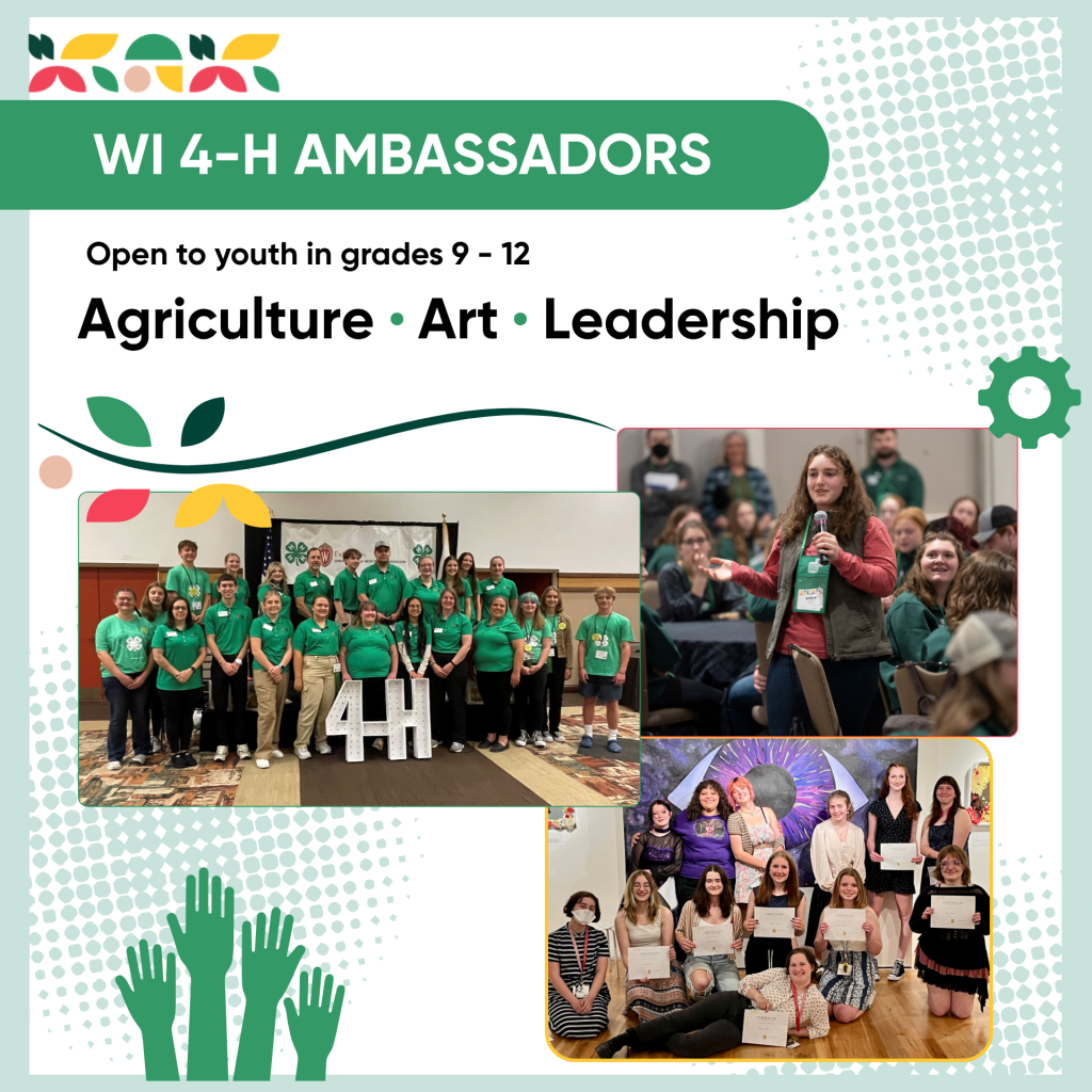 Applications for the Wisconsin 4-H PYD Leadership Ambassadors are now LIVE! Visit https://26AmbassadorApp.4honline.com to apply!